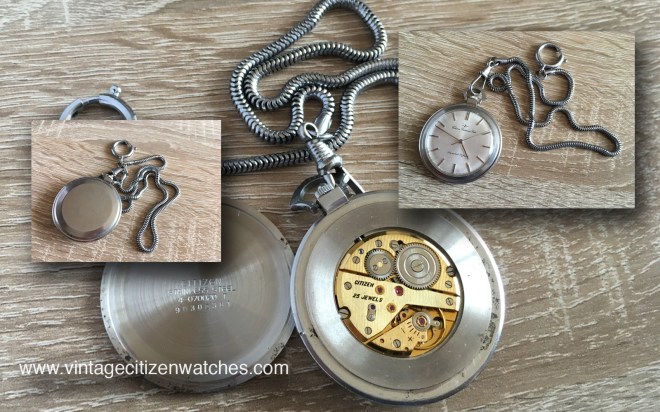 The watch can also be found (not easy, but it can de found – I did it) in a pocket watch form. Here it is, with original chain. Same beautiful movement in a large case, with an acrylic crystal.