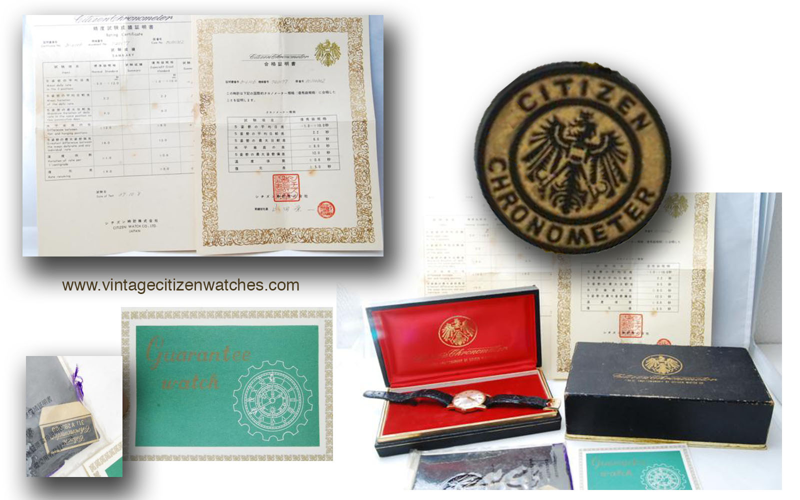 Some say it was born as an answer to Seiko’s Grand Seiko line. Others say it was made to demonstrate a point, that Citizen is capable of great things, so they constructed this awesome time piece, the best one! And it stands its grounds up to this day as both vintage and modern, classy and elegant, powerful watch no matter the reason it was made for in the first place. This model was launched in November 1962 and was produced for about 4-5 years. Being a Chronometer means it has a very high accuracy level, ranging from -1 to +10 s / day. The very large balance wheel and the fine adjustments along with the carefully designed and constructed movement proved it to be the best movement Citizen had at the time. The finishing is great too and even today I find it very pleasing to look at. Â It is a hand winding movement (soon after this most of the watches were automatics) and runs at 18.000 bph while having a nice power reserve of about 53 hours. On Citizen page can be found a certificate (the picture below) that proves the quality of the watch, also I fond this solid gold marvel that sold for… over 16,000 USD!
