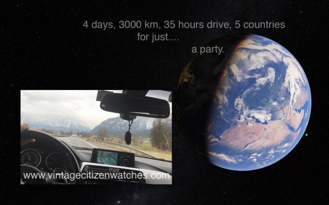 The trip was long but awesome! Five countries, 3000 km, 35 hours driving time, a few restaurants along the way and all this for just a two hours party?! Well, that is correct, it was not just a party, it was the Citizens 100th anniversary and there was not a chance I would have missed it. Sunny and snow, cold and rain, stuck in traffic on the highway and yet again doing 250km/h plus on German Autobahn… We made it in Switzerland just in time to meet a few on-line friends at the fair while taking a look at the new watch releases. Unfortunately, because of the tight schedule, I couldn’t meet all the friend I planned to. Hopefully next time.