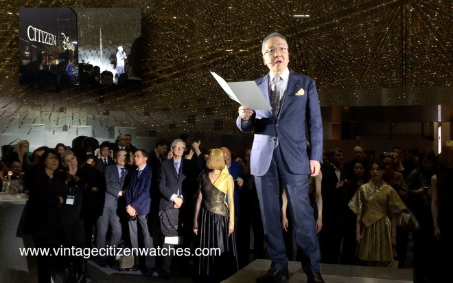 The music was nice, perfect for the occasion and the light show was awesome, we had a Sushi bar with Japanese chefs and fine drinks. There was a beautiful dance moment “Light is time’ but the highlight of the party was the speech of mr. Toshio Tokura – President and CEO of Citizen Watch Co.,Ltd. Here it is a part of it: